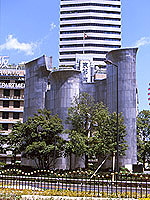 毎度ながら粘土をコネコネして完成させたような、どこにも直線のない有機的デザイン。ハコモノ建築郡の中に、この換気塔はいろんな意味で輝いています。